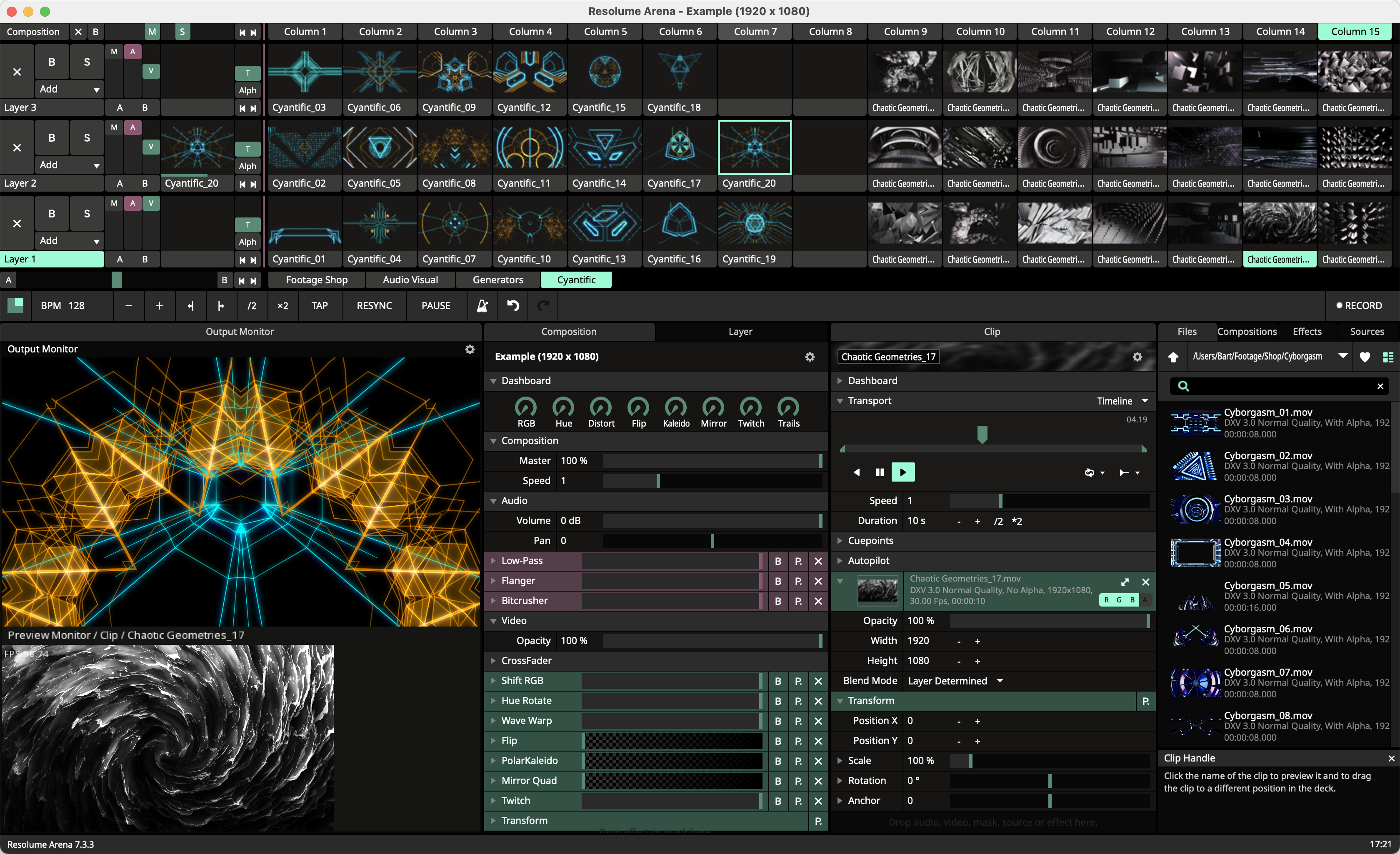 You use it to mix, trigger, manipulate and output video in real time during performances, installations, club nights, events or presentations.